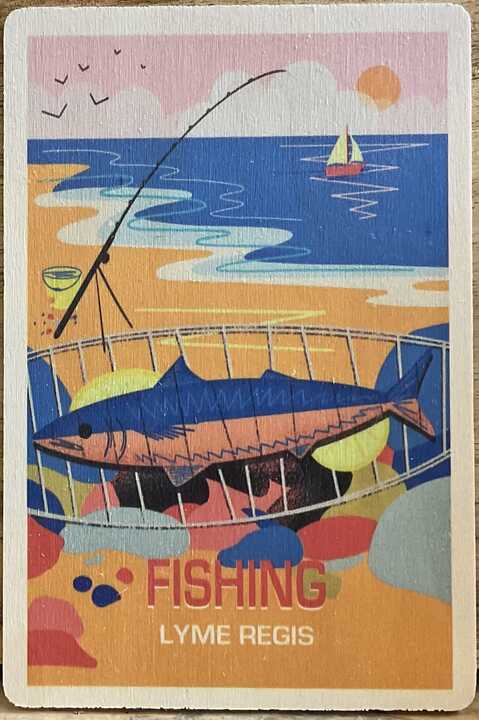 Wooden postcard - ‘Fishing in Lyme Regis’ - can be sent in the post! Width 10cm Height 15cm Depth 0.4cm
