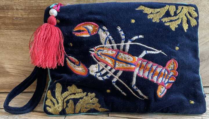 Lovely velvety clutch bag with lobster embroidered design, very decorative and a beautiful additional to any outfit! 25.5 x 18cm