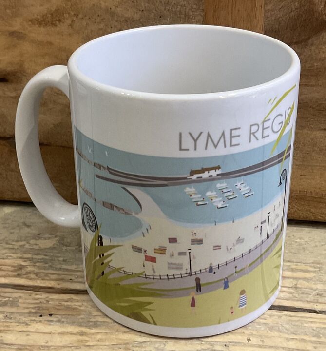 Printed Lyme Regis mug with a view from the gardens onto the Cobb 9.5cm height, 8cm diameter