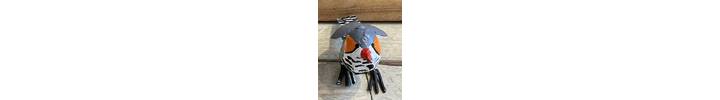 Hand painted Zebra Finch made from recycled metal. 7cm height, 8cm length, 6cm depth Suitable for outdoor use