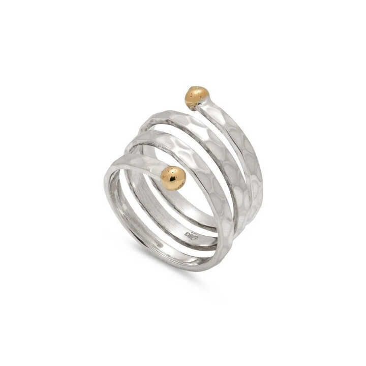 Spiral ring Sterling silver with gold plate One size - can be stretched to make larger or pushed together to make smaller Presented in a pouch bag